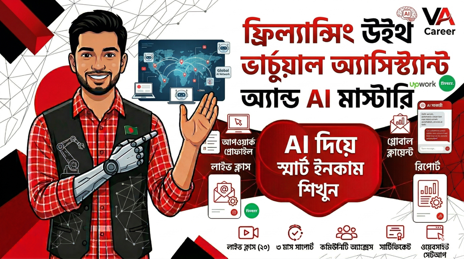 একদম Beginner Friendly & Updated কারিকুলাম, ধাপে ধাপে Freelancing With Virtual Assistant And AI Mastery শিখবেন।
